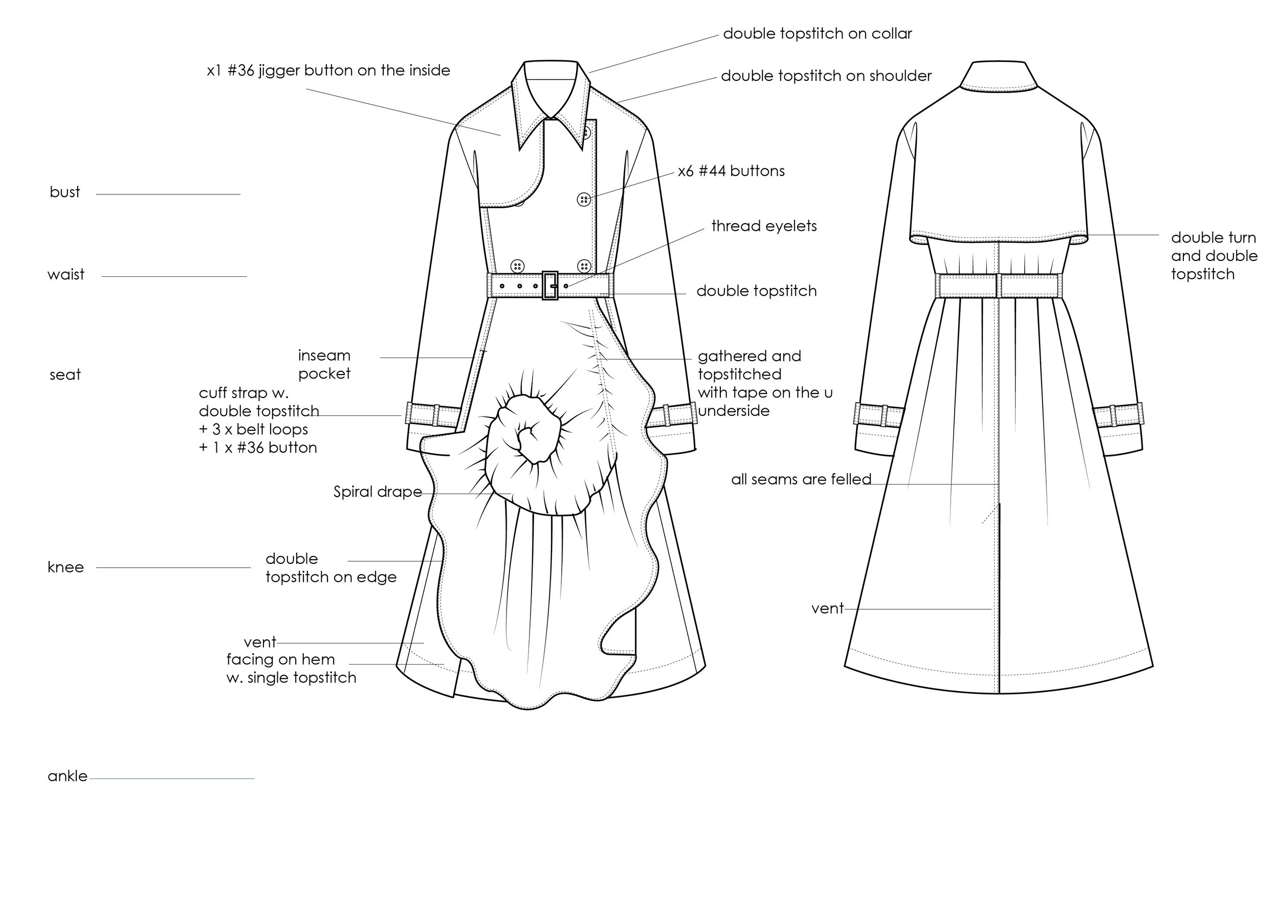 • You will have a set of professional technical drawings and information that would be industry standards to send to a factory, seamstress or pattern cutter.
